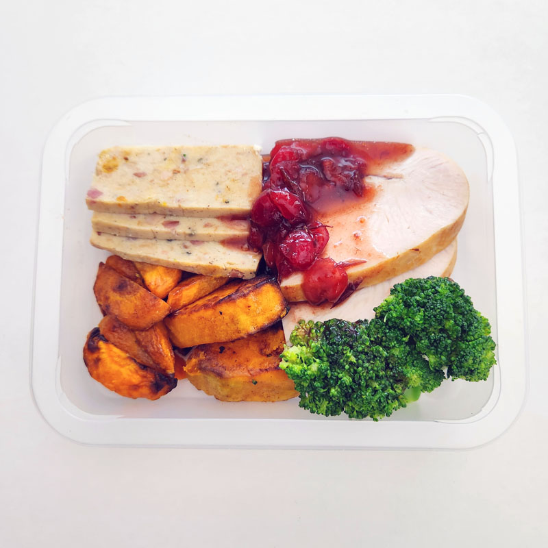 | Ingredients: Turkey (29%), Carrot, Pumpkin, Broccoli, Canola Oil, White Bread, Bacon, Onion, Milk, Whole Egg, Nutmeg, Sage, Water, Cranberry Sauce, Gravy Powder, Arrowroot, Salt, Pepper. | ||